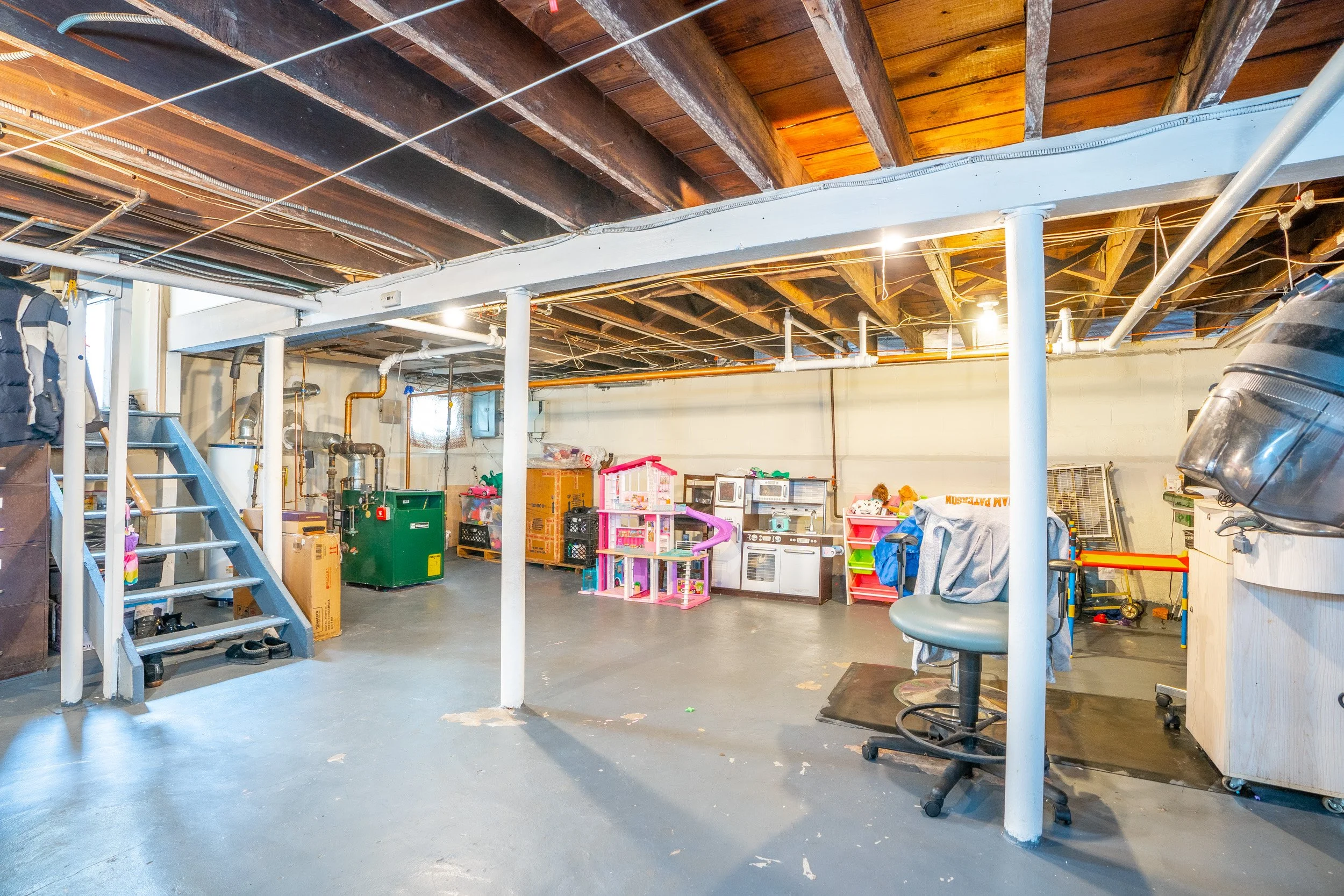 Follow the hardwood floors up the stairs into three great-sized bedrooms and a full bath. At the same landing, you will find access to the fourth bedroom with an additional half bathroom. The unfinished basement is teeming with potential and space for storage and recreational activities along with another half bathroom with a dedicated laundry area.